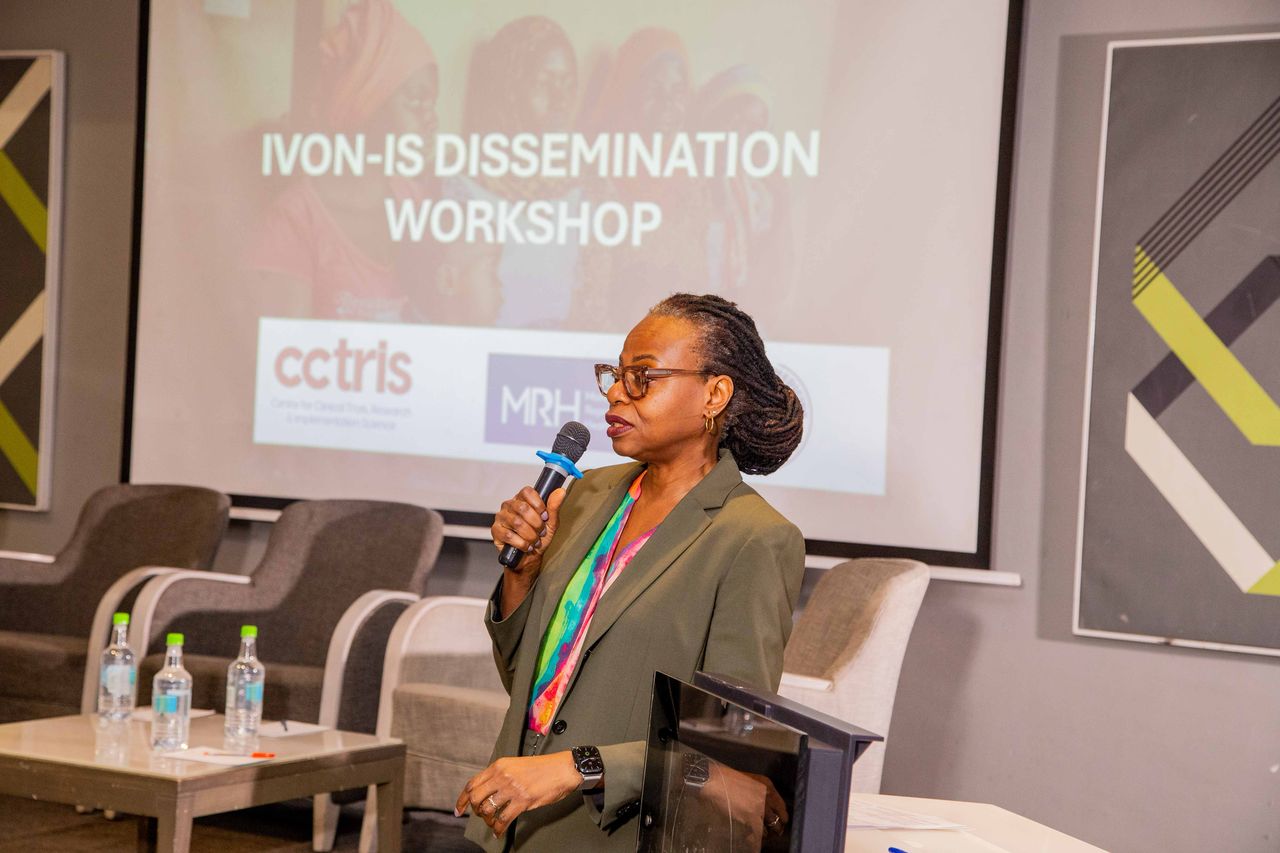 Prof. Bosede Afolabi giving a presentation at the CCTRIS launch